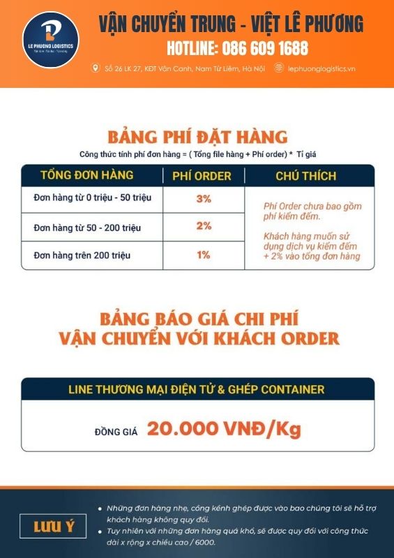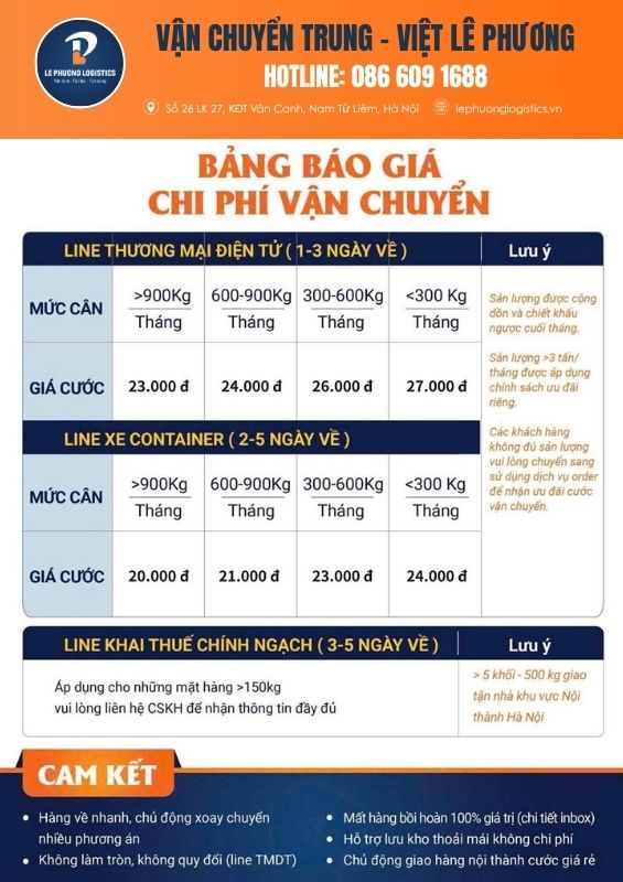Bài viết sau chúng tôi sẽ chia sẻ cho bạn bảng giá dịch vụ vận chuyển, đặt hàng và thời gian dự kiến hàng về kho khi nhập hàng theo line TMĐT tại Lê Phương Logistics: