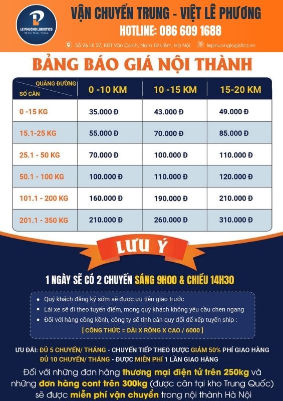 Để có thể nhận được mức giá ưu đãi và được tư vấn về cách mặt hàng, các thông tin về vận chuyển hàng Việt - Trung bạn hãy liên hệ Lê Phương Logistics bằng những hình thức sau:
